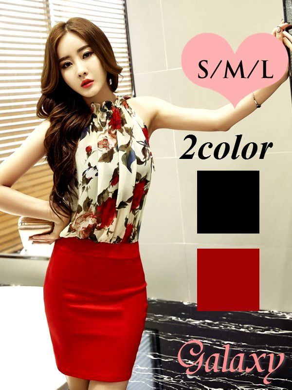 花柄スリムラインエスニック風チャイナワンピース