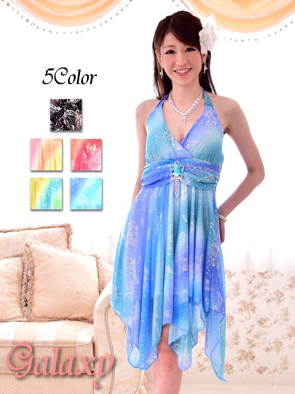 SILVERバタフライプリント☆ランダムカットグラデーションミニキャバドレス