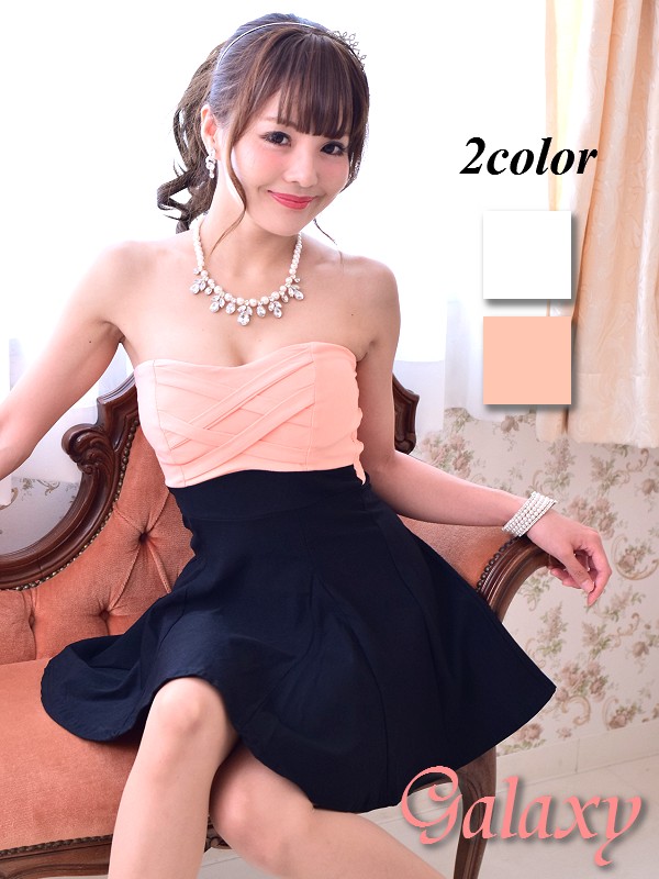 胸元クロスデザイン*バイカラー配色フレアーミニドレス