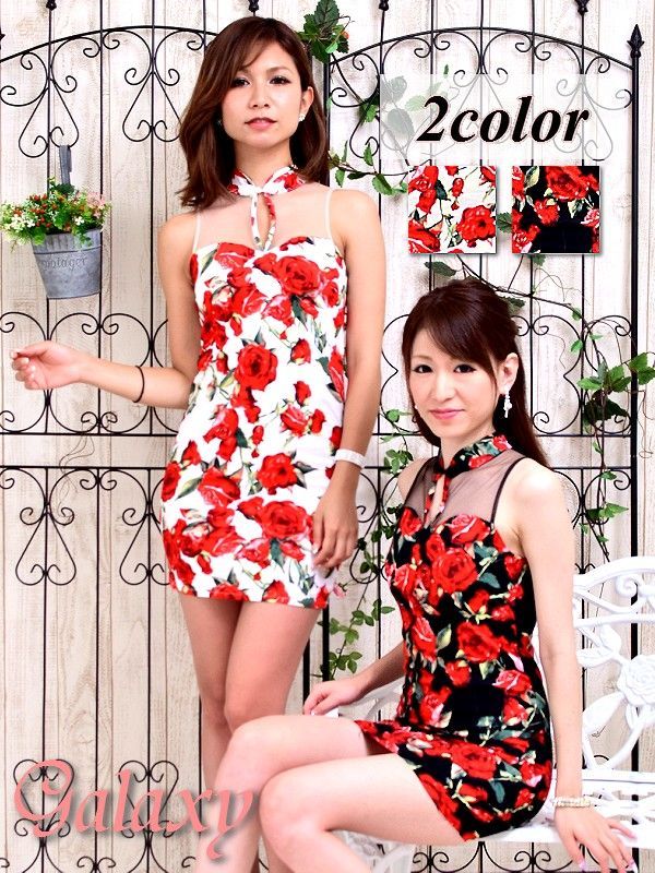 魅惑のROSE柄デザイン胸元透けシースルミニドレス
