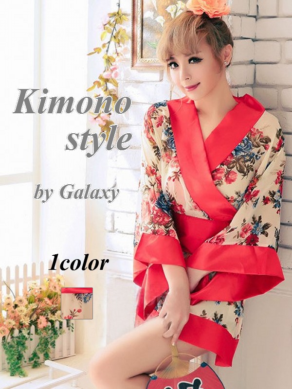 シフォンシースルー花柄着物ドレス/浴衣/コスプレ
