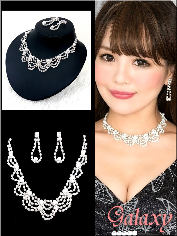 パール&ラインストーンセットアクササリー2点セット【ネックレス・ピアスorイヤリング】