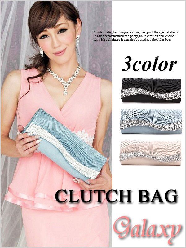 グラデ-ションプリーツサテンウエーブフラップクラッチバッグ