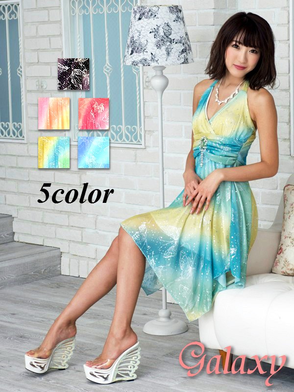 SILVERバタフライプリント☆ランダムカットグラデーションミニキャバドレス