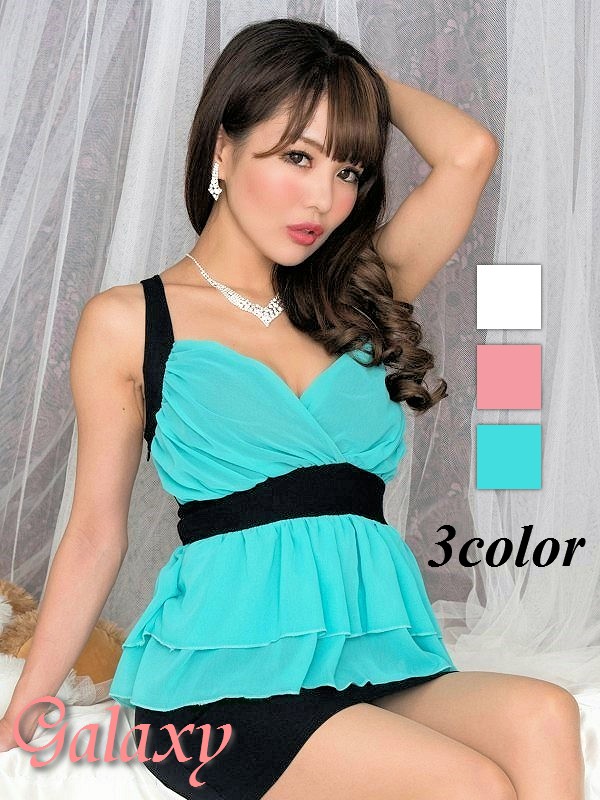 バッククロス*2段フリルぺプラムストレッチミニドレス*3color