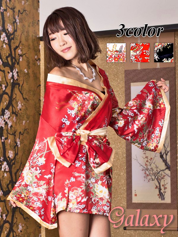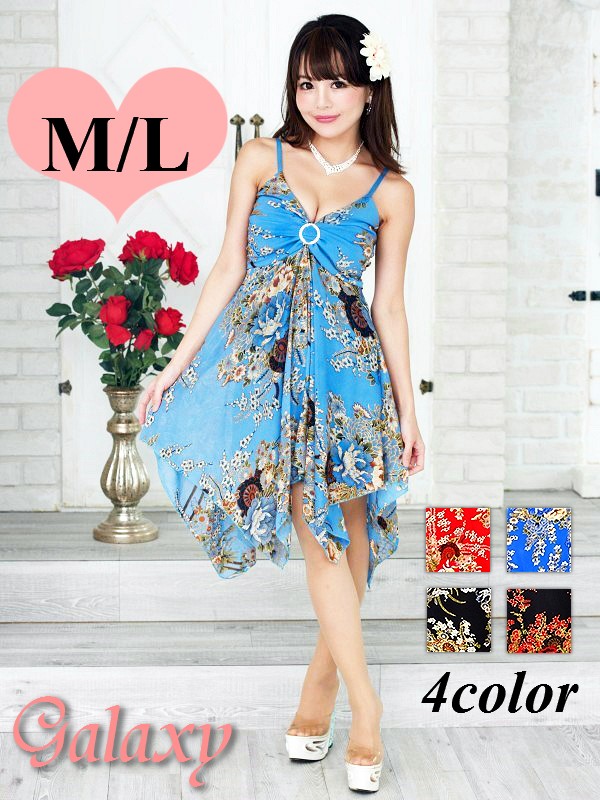 GOLDラメでトリミングした和風花柄が煌びやかな 美脚見せ効果抜群のランダムカットミニキャバドレス♪♪