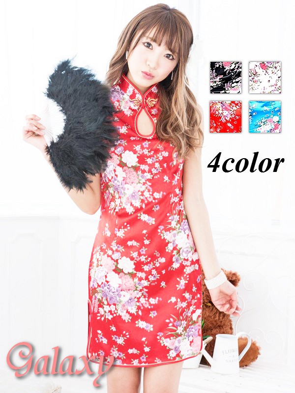 小花柄が可愛い♪サテンチャイナミニドレス♪