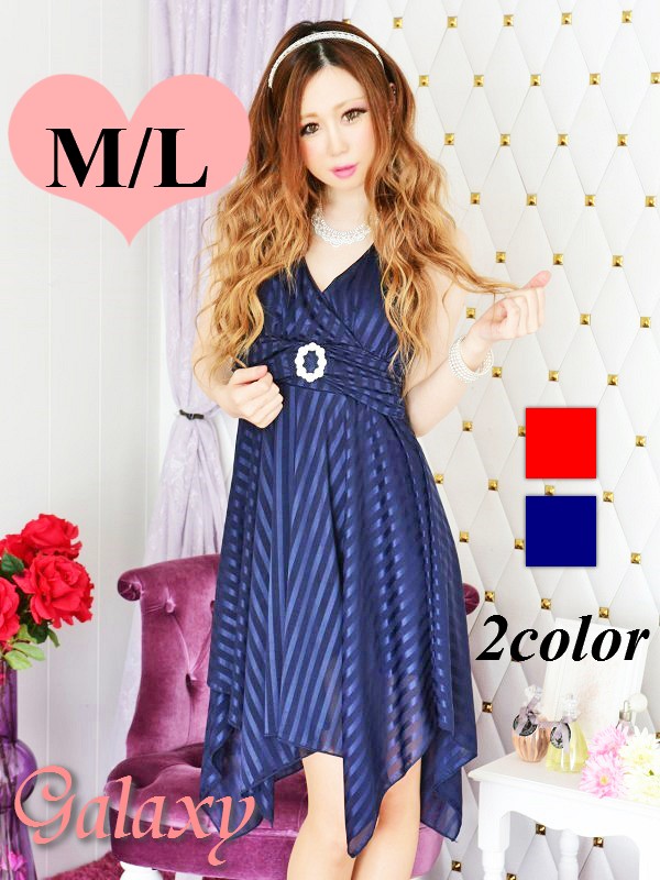 クリスタルストーン付サークルバックル*ストライプ柄ランダムカットミニドレス
