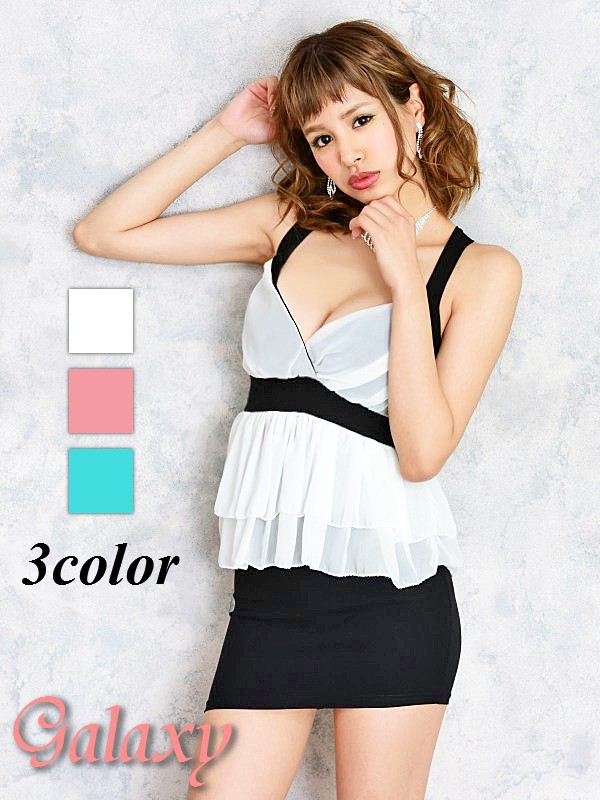 バッククロス*2段フリルぺプラムストレッチミニドレス