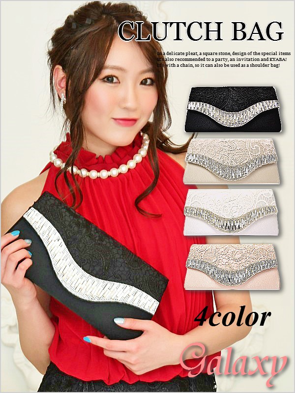 たっぷりストーンレース重ねサテンクラッチバッグ