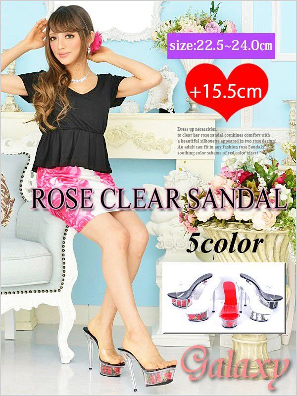 オシャレに差がつく薔薇がキュート♪セクシーローズクリアサンダルハイヒール