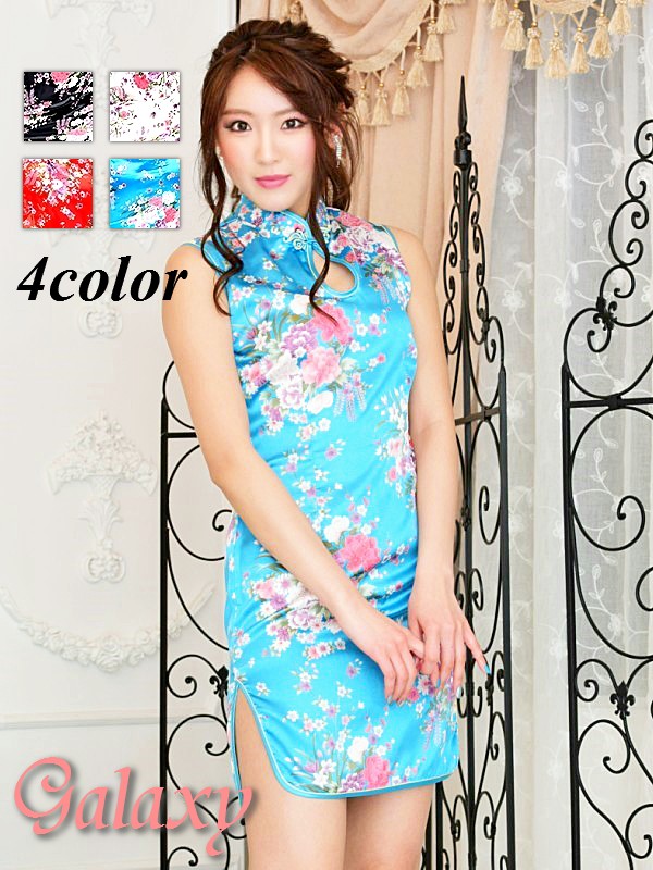 小花柄が可愛い♪サテンチャイナミニドレス♪