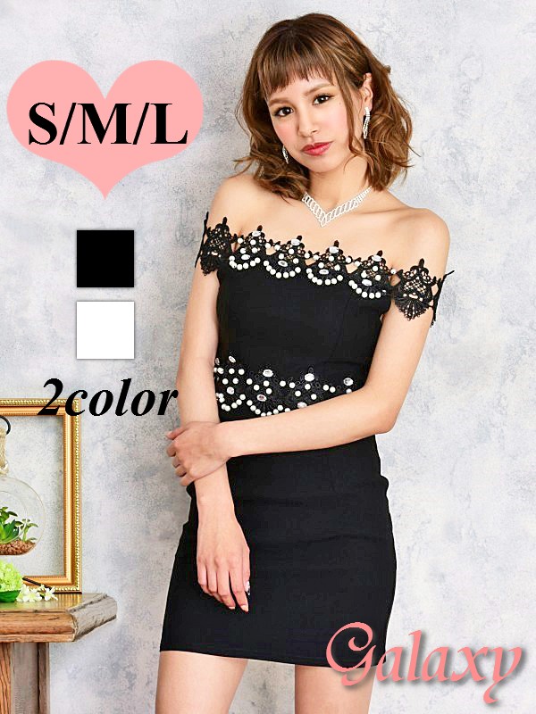 レースドッキングオフショルダーネックビーズ付スリムラインワンピース