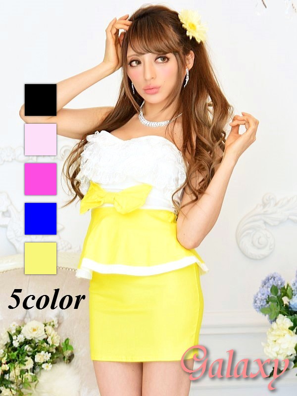 CUTEフリルレース&でかリボン*ペプラムラインストレッチミニワンピ