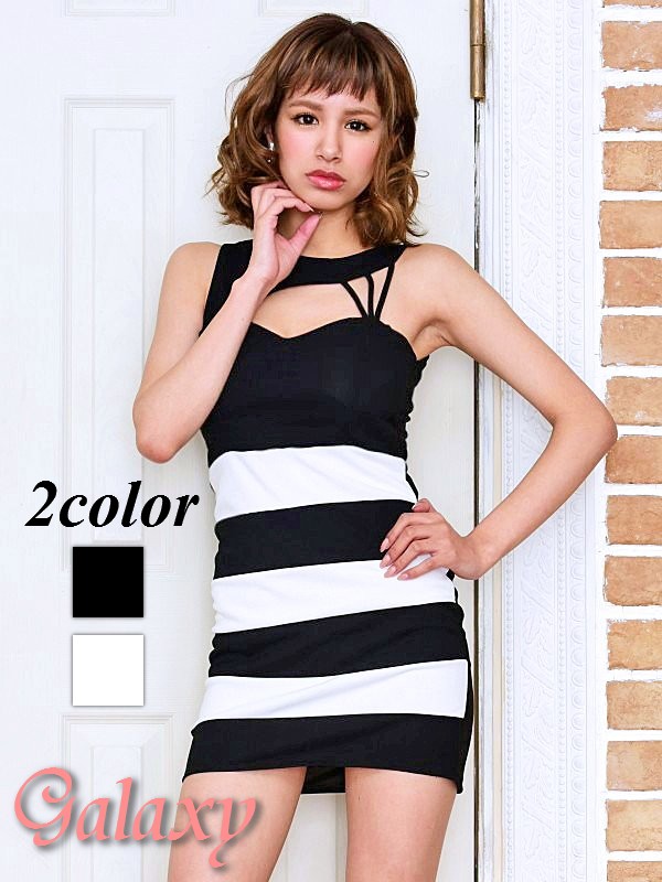 セクシー胸元魅せデザイン*バイカラー配色ストレッチミニドレス