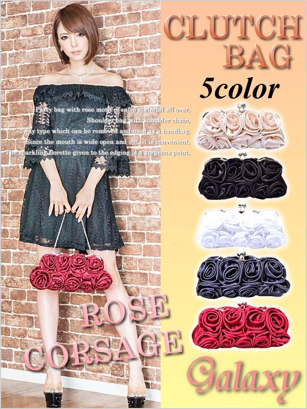 ローズコサージュ*サテンがま口クラッチバック
