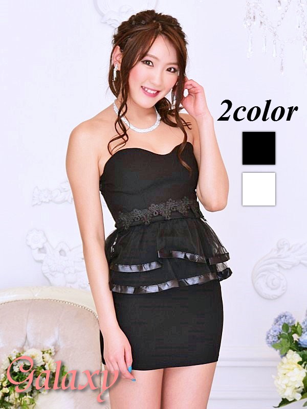 フロントレースデザイン*サテン縁取りメッシュぺプラムミニドレス