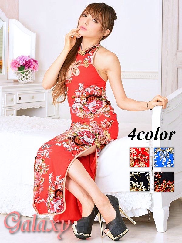 絢爛華麗*胸元カットアウト*煌和風花柄チャイナロングドレス