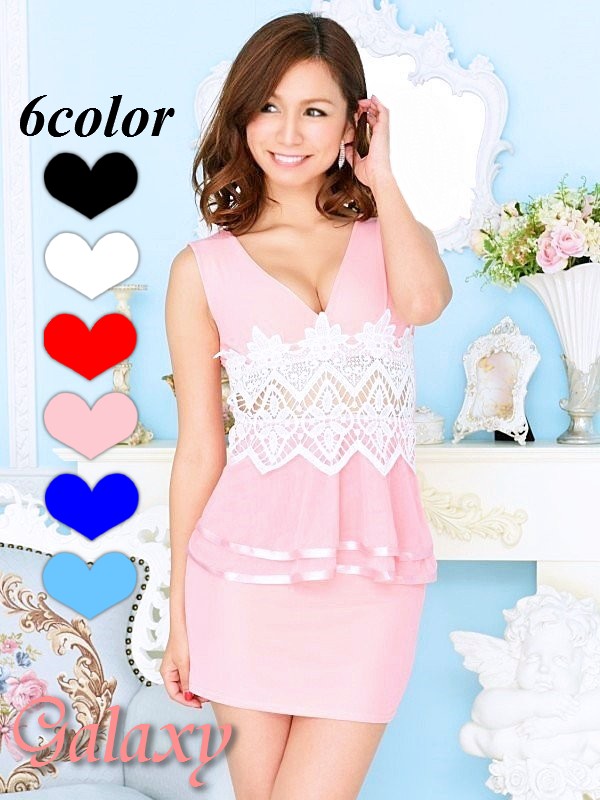 ウエストクロシェレース透け*ペプラムラインストレッチミニワンピ
