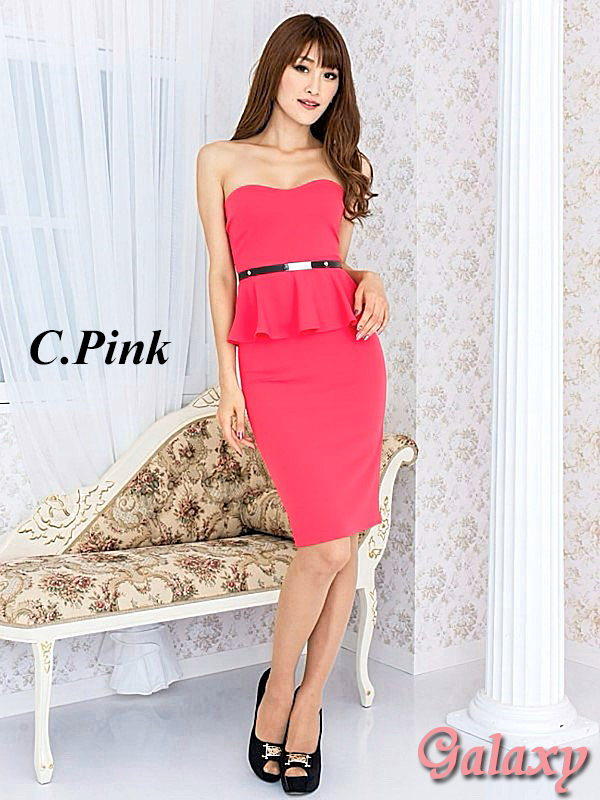 ペプラムデザイン*ベアトップ*シンプルワンカラー*膝丈タイトドレス*2color [3344-6922]