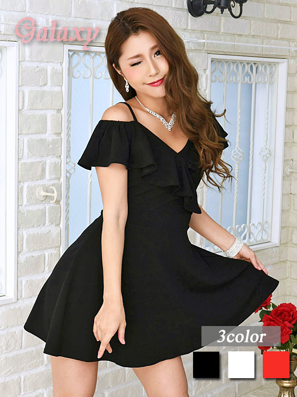 胸元クロスフリル*オフショルダー*ストレッチキャミワンピース*3color [4733-4720]